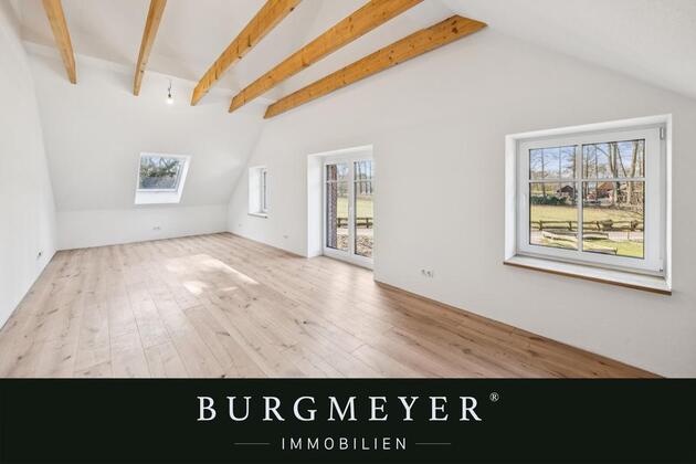 Diese attraktive Mietwohnung überzeugt durch ihren besonderen Charme und eine hochwertige, zeitgemäße Ausstattung. Der ursprüngliche Heuboden verbindet nach einer komplett Sanierung des gesamten Gebäudes nun modernen Wohnkomfort mit historischem Flair.
